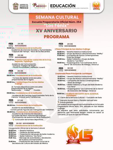 La Semana Cultural de la EPO 254 “Los Fénix” reúne una amplia variedad de eventos académicos, artísticos, deportivos y recreativos diseñados para celebrar el XV aniversario de la institución.